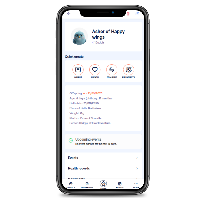 Vytvor podrobný profil pre akékoľvek zviera, zaznamenaj všetky kľúčové identifikačné informácie a údaje o pôvode. Okamžite tak položíš základ pre komplexnú, dlhodobú správu.
