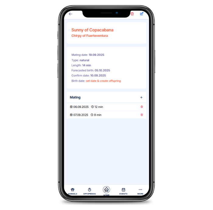 Náš plánovač párenia zjednodušuje najdôležitejší krok pri chove. Jednoducho zaznamenaj samicu a samca a systém okamžite vypočíta odhadovaný dátum pôrodu.